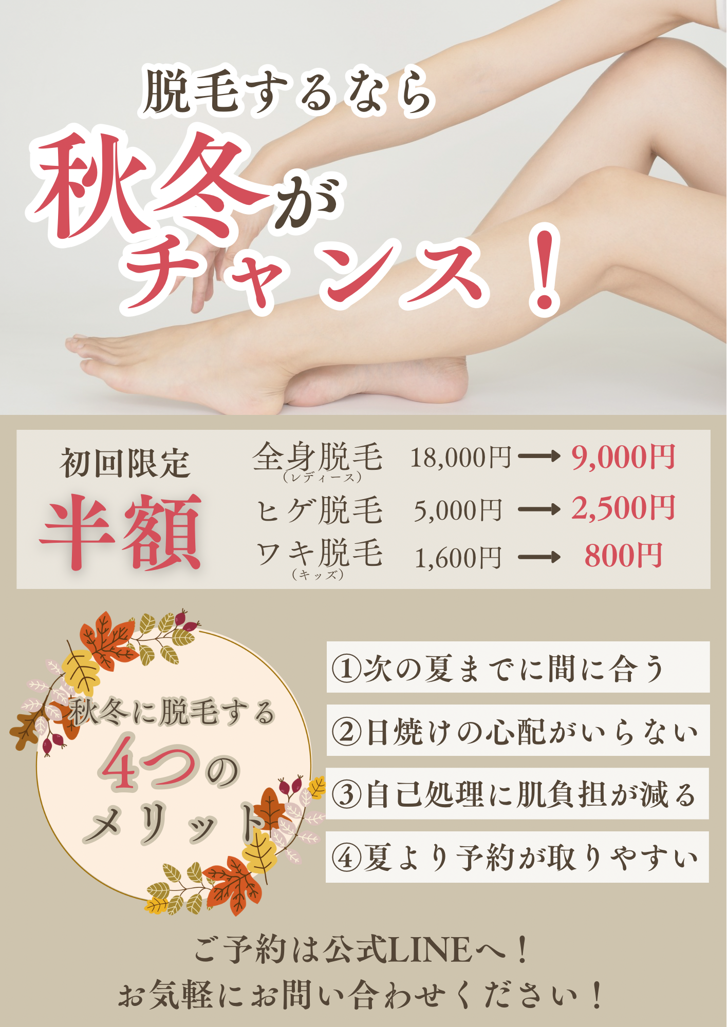 実は逆で【秋冬】こそが脱毛の始めどきです🍂
